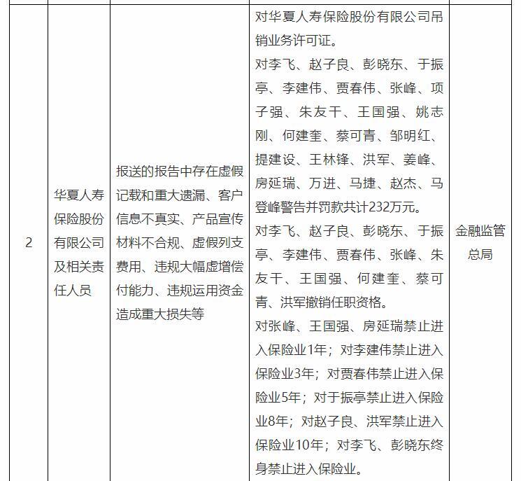 导读:中经网北京8月2日讯国家金融监督管理总局网站8月1日发布的行政处罚信息公示列表显示,华夏人寿保险股份有限公司及相关责任人员报送的报告中存在虚假记载和重大遗漏、客户信息不真实、...